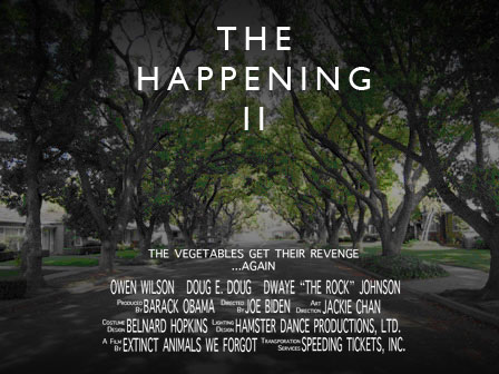 I think there should be a sequel to The Happening if they’re filming a sequel to Taken. I’ll even save them some money and offer up this poster to make it easier for them. Art department? Pfffft.
